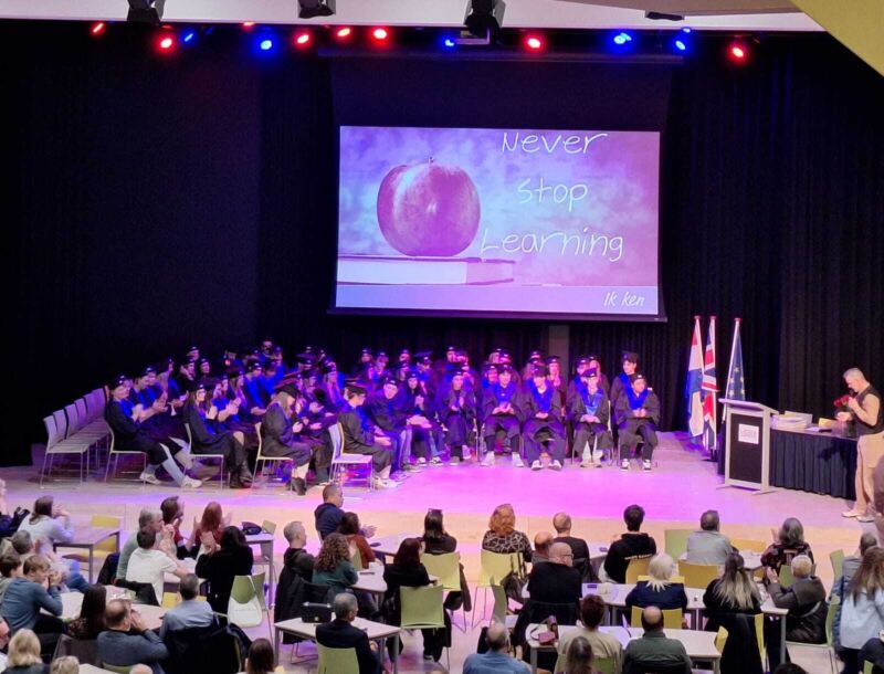 Natuurlijk vergeten we de Nederlandse taal ook niet. In de bovenbouw heb je nog 35% van je lessen in het Engels. Je anderen lessen krijg je dan in het Nederlands. Op die manier ben je goed voorbereid op de examens die in het Nederlands zijn. Daardoor ontwikkel je je niet alleen verder in het Engels, maar weet je bijvoorbeeld ook de juiste Nederlandse begrippen voor je examen biologie.